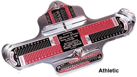 - Specially calibrated for soft-soled athletic footwear, measures men and women on a dual scale (US sizes).